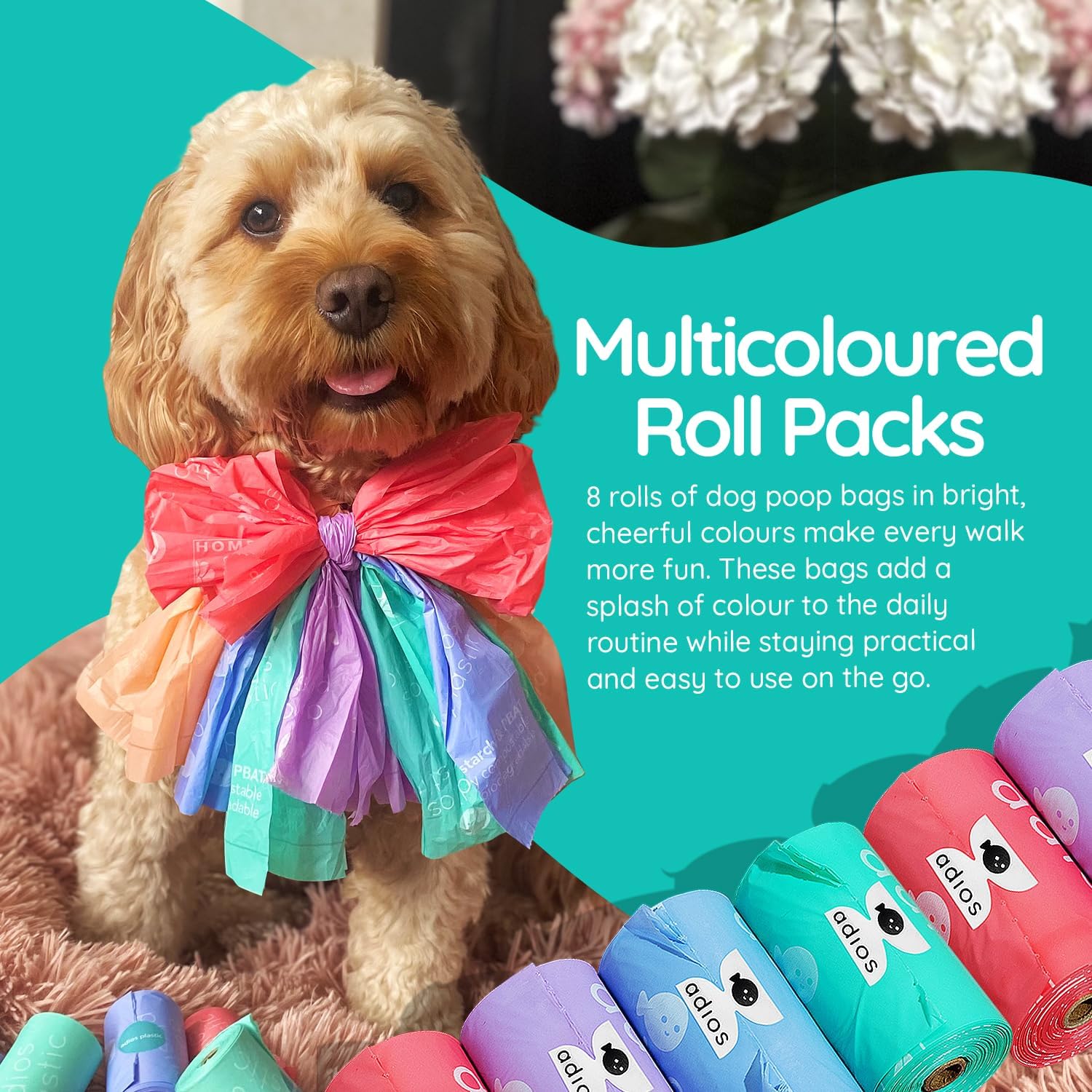 Rainbow Compostable Poo Bags, 120 Bags (8 Rolls)