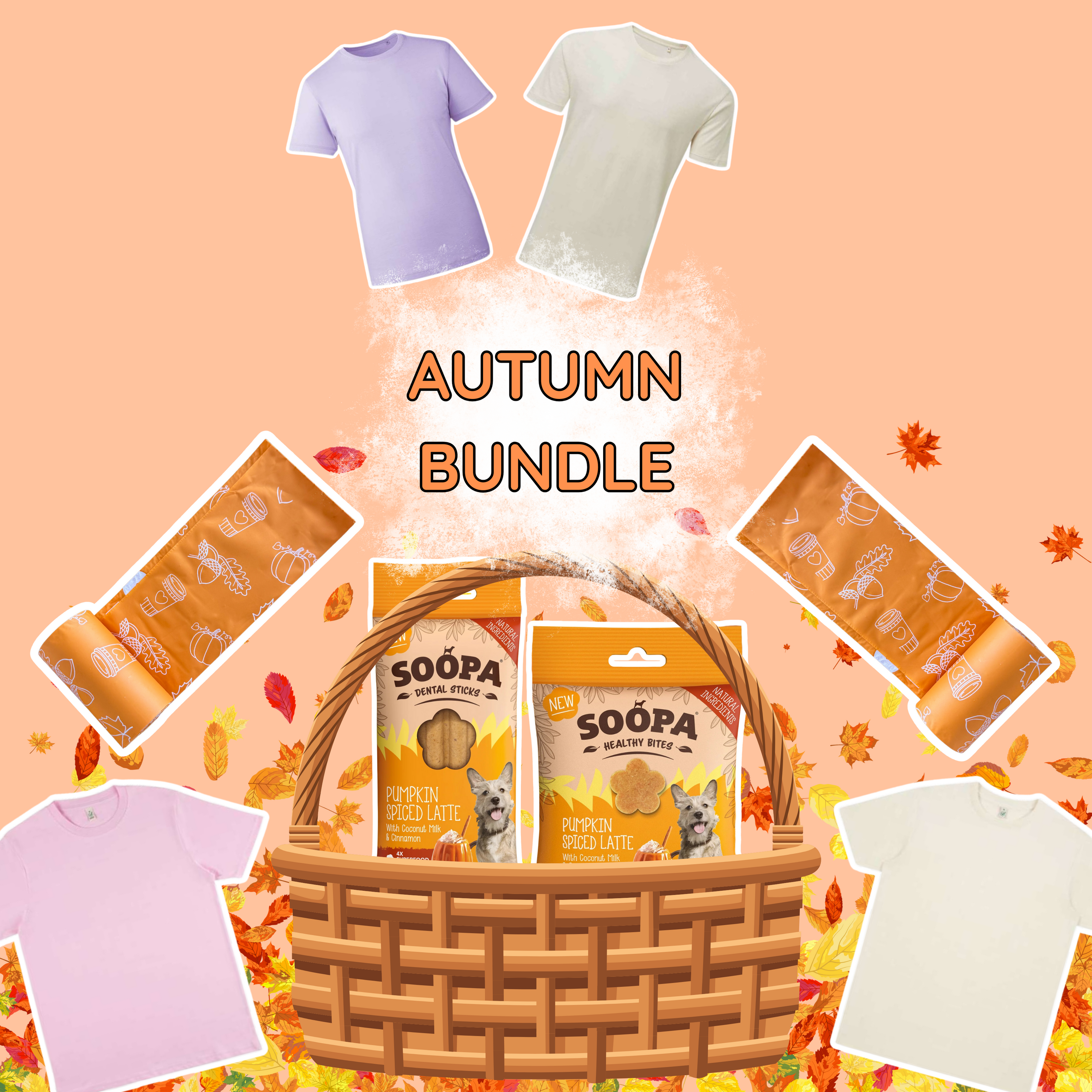 Keep it light but make it seasonal. A classic Adios Organic Tee, our compostable autumn rolls, and Soopaโs pumpkin-spiced treats = the perfect trio for leaf-crunching strolls.