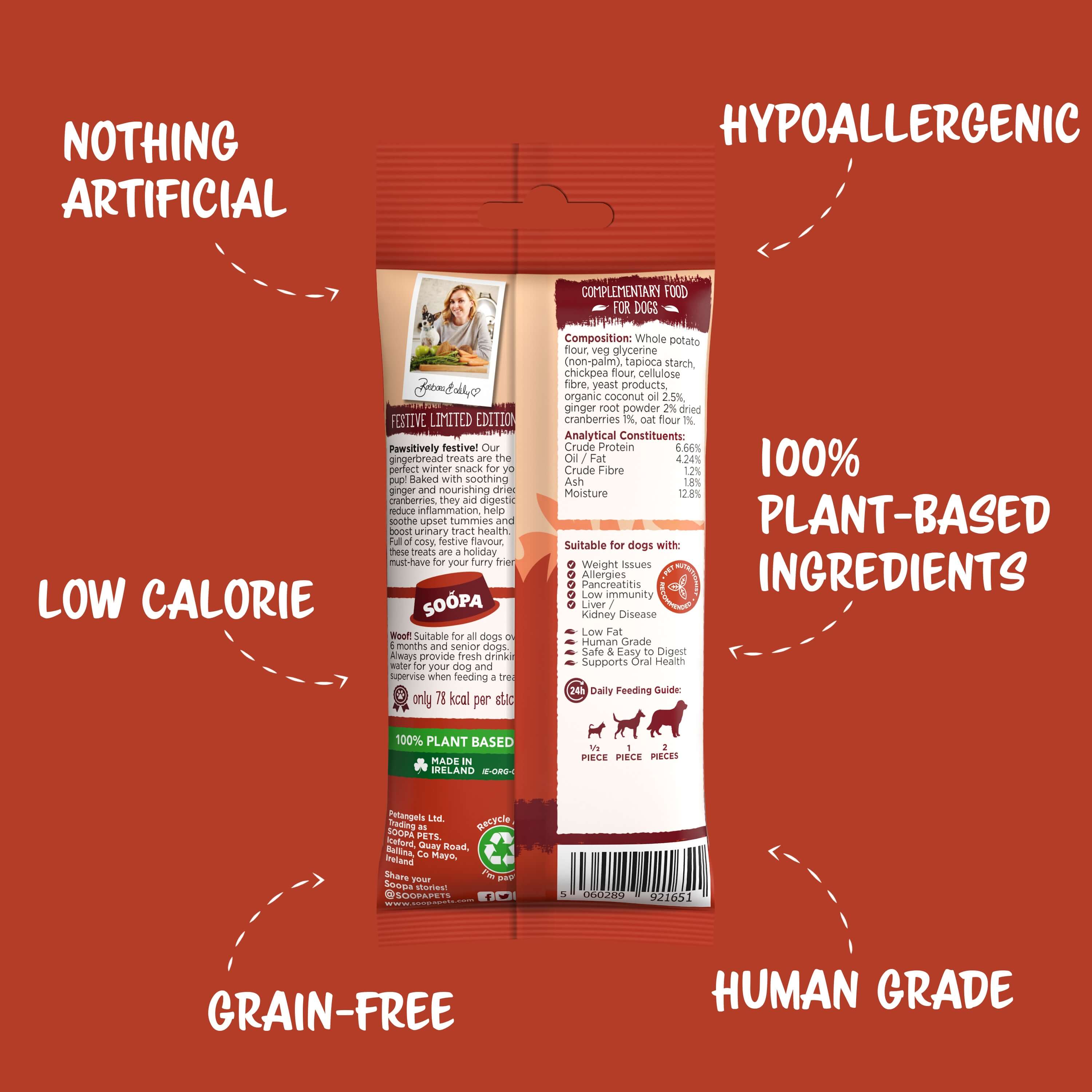 These limited-edition gingerbread dental sticks are packed with tummy-loving ginger, antioxidant-rich cranberries and totally plant-based goodness — all wrapped in plastic-free, recyclable packaging.